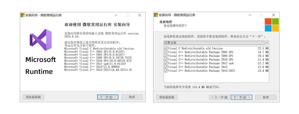 所有的安装文件均来自微软官方网站,且为最新数字签名版本。这些运行库是采用Microsoft Visual Studio 编写的软件所必需的公用DLL运行库,相当于程序的字典文件。